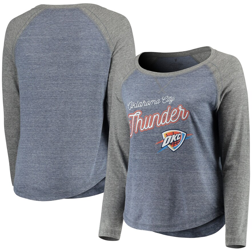 Women’s Soft as a Grape Heathered Blue Oklahoma City Thunder Plus Size Colorblock Raglan Tri-Blend Long Sleeve T-Shirt